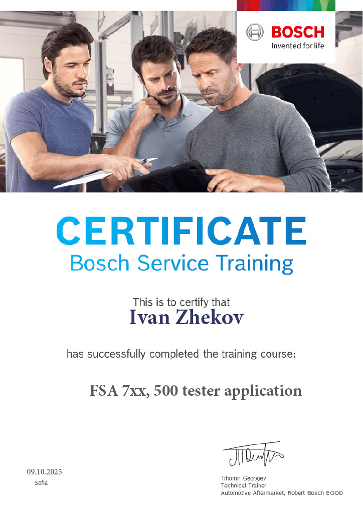 Нашият техник е с 30 години опит в диагностицирането на сложни и заплетени проблеми с всякакъв вид автомобили, с помощта на специлиазиран Bosch софтуер за най-различни марки леки и товарни коли (дори нишови модели, които не се предлагат от колегите ни). След като се уверим в точния казус на вашия автомобил, ние ще ви препоръчаме най-ефективното и бюджетно за вас решение за ремонт, спестявайки ви време, нерви и пари. Експертното ни мнение е включено в цената на диагностиката. По ваше желание, след експертизата която ще ви предоставим, можете да изберете да отстраним вашия проблем или да отидете с нашия доклад при други колеги. Изборът на сервиз за ремонт остава напълно ваш.
